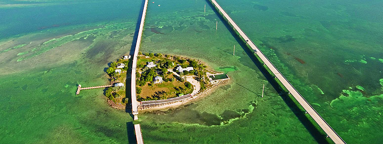 The road from Miami to Key West is very picturesque and lies across the motorway, which connects the islands by dams and bridges, the Atlantic Ocean from one side, the Gulf of Mexico from the other. This place commands a fabulous panorama: the bright blue sky and the dazzling turquoise sea.